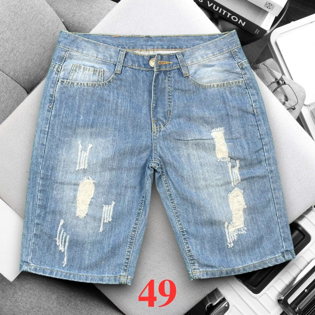 Quần sọt jean nam không co giãn xanh nhạt cào có rách là sự lựa chọn hoàn hảo cho những chàng trai yêu thích phong cách trẻ trung, cá tính, và phá cách.