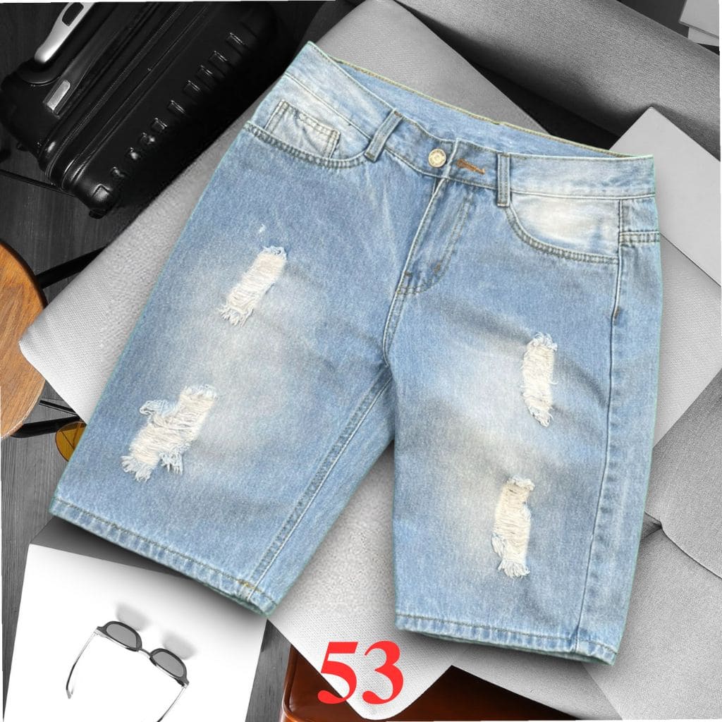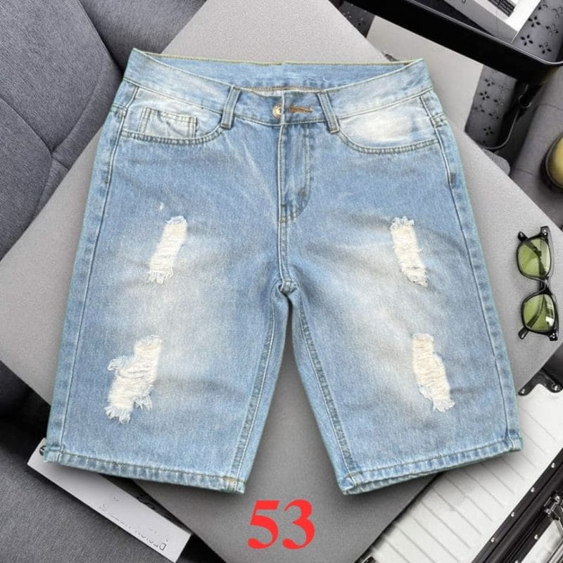 Quần sọt jean nam không co giãn xanh nhạt rách là lựa chọn hoàn hảo cho những chàng trai yêu thích phong cách trẻ trung, năng động, và phá cách.