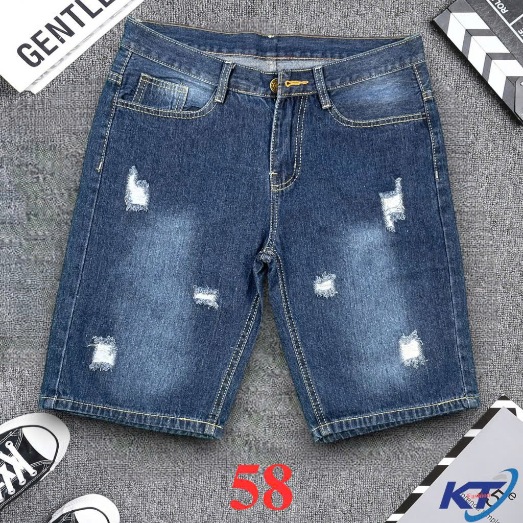 Quần Short Jean Nam Không Co Giãn KT Màu Xanh Đậm Rách Thời Trang