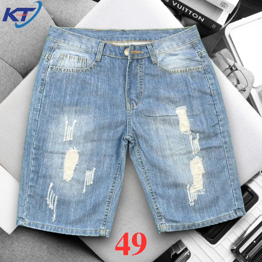 Quần Short Jean Nam Không Co Giãn KT Màu Xanh Nhạt Cào Rách Thời Trang